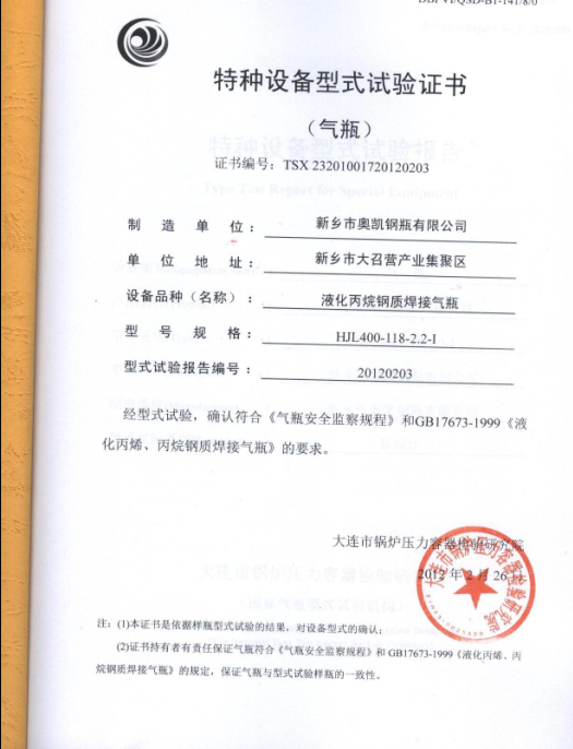 熱烈慶祝我公司118L丙烷鋼瓶一次性通過檢驗Time:[--]